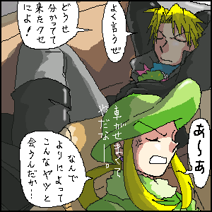 車の後部席にもぐり込むブソンを、バンナイは腹立たしげににらみつけます。