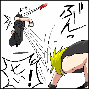 怒りにまかせてワザとやったため、相当の力がこもっていたらしい。両手両ひざを地面につけ、ブソンは痛みでしばらく動けない。