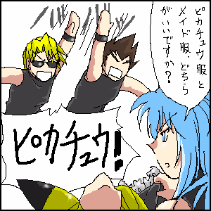 どこから持ってきたのか、メイド服とピカチュウスーツ。
